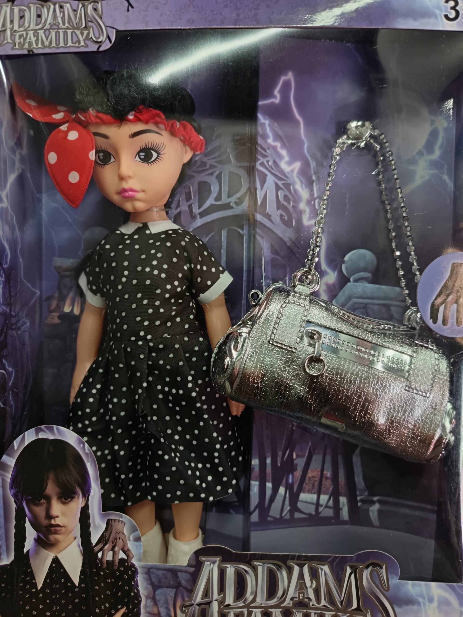 👜 Matching Wednesday Handbag: A stylish, spooky-inspired mini handbag that complements the doll perfectly. Kids can carry their small goodies, or fans can use it as a collectible accessory.